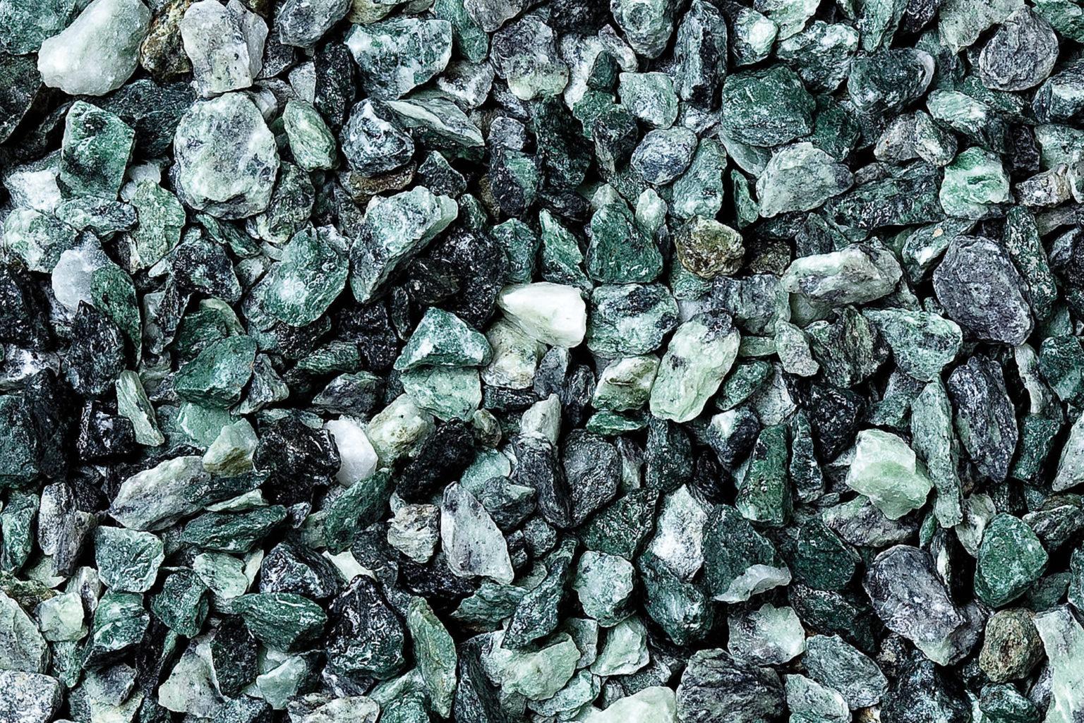 Hochwertiger Marmorsplitt mit natürlicher Grünstruktur
