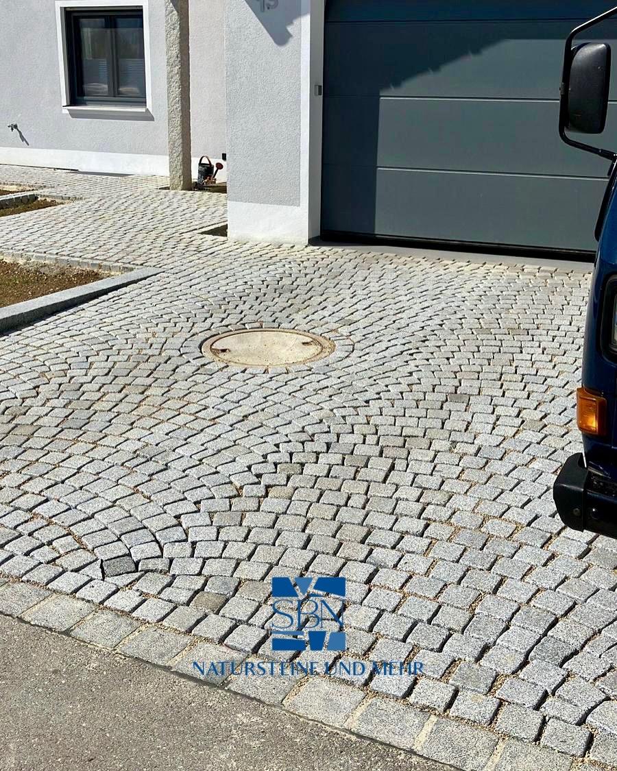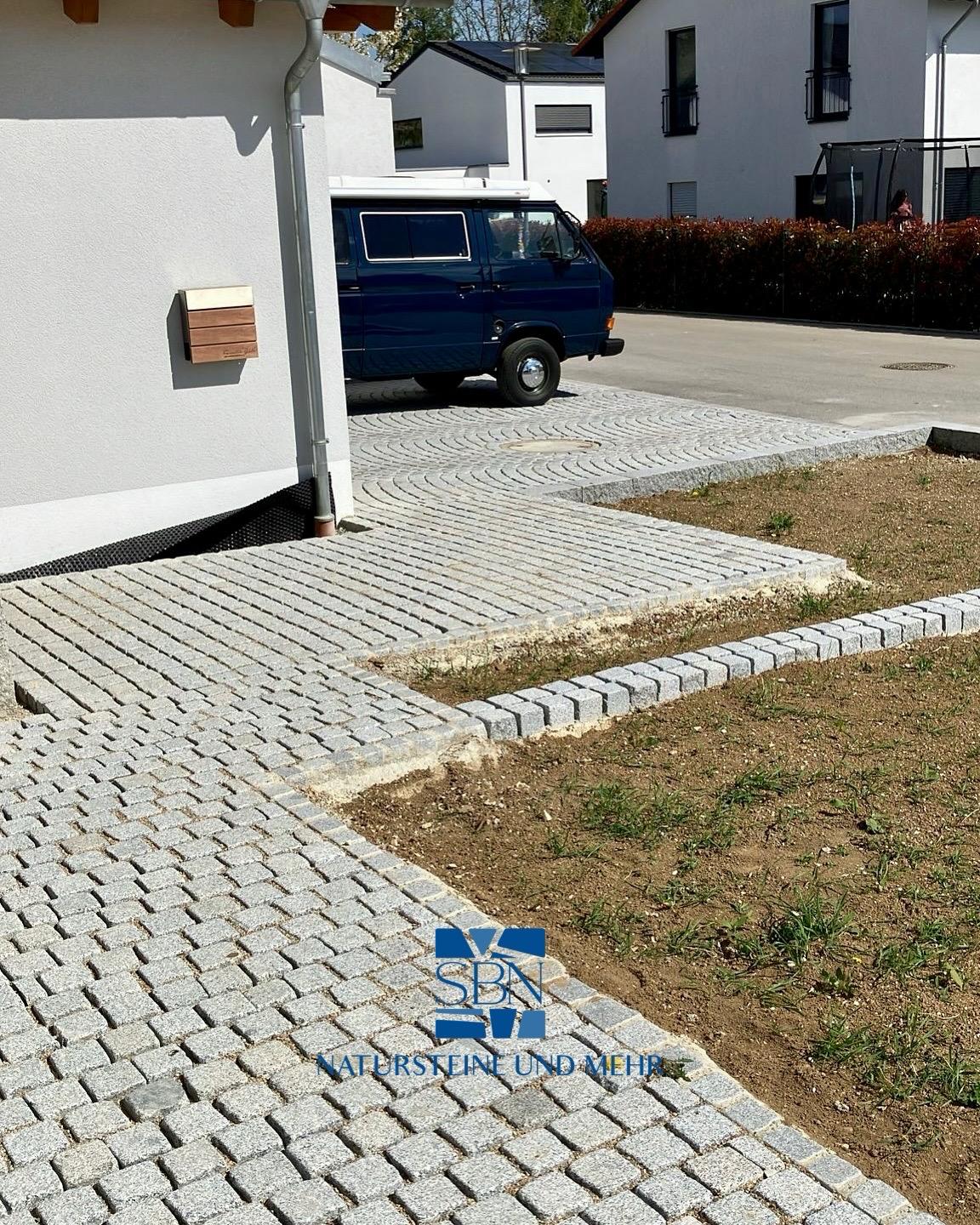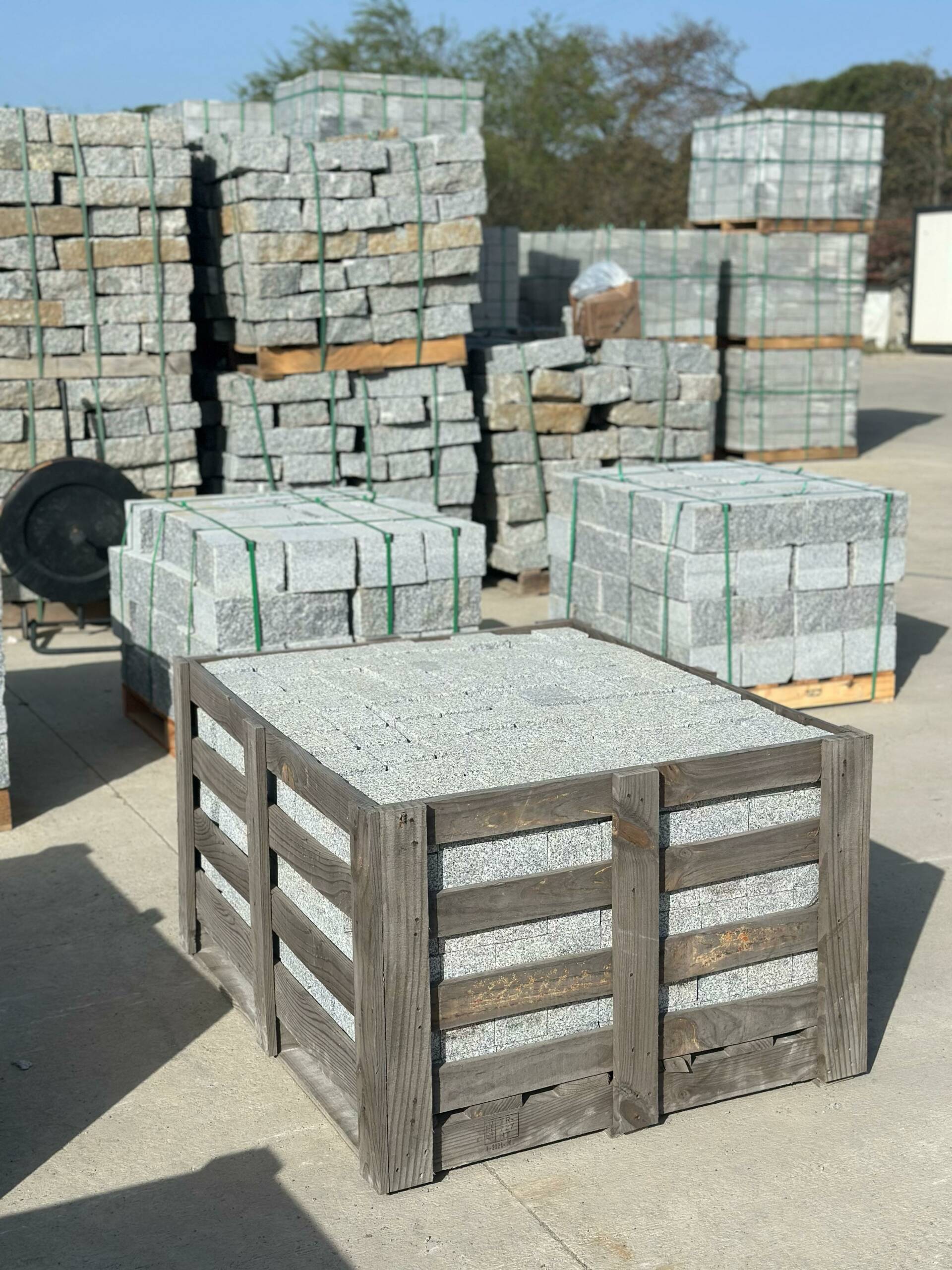 Hochwertiges Granitpflaster aus eigener Produktion – gefertigt aus feinkörnigem Bergama Granit. Ideal für anspruchsvolle Außenanlagen mit moderner, gleichmäßiger Optik.