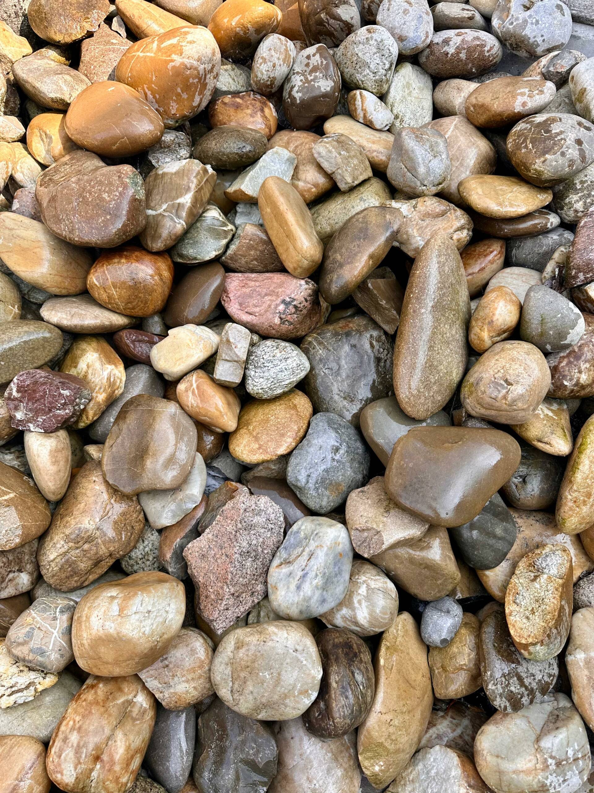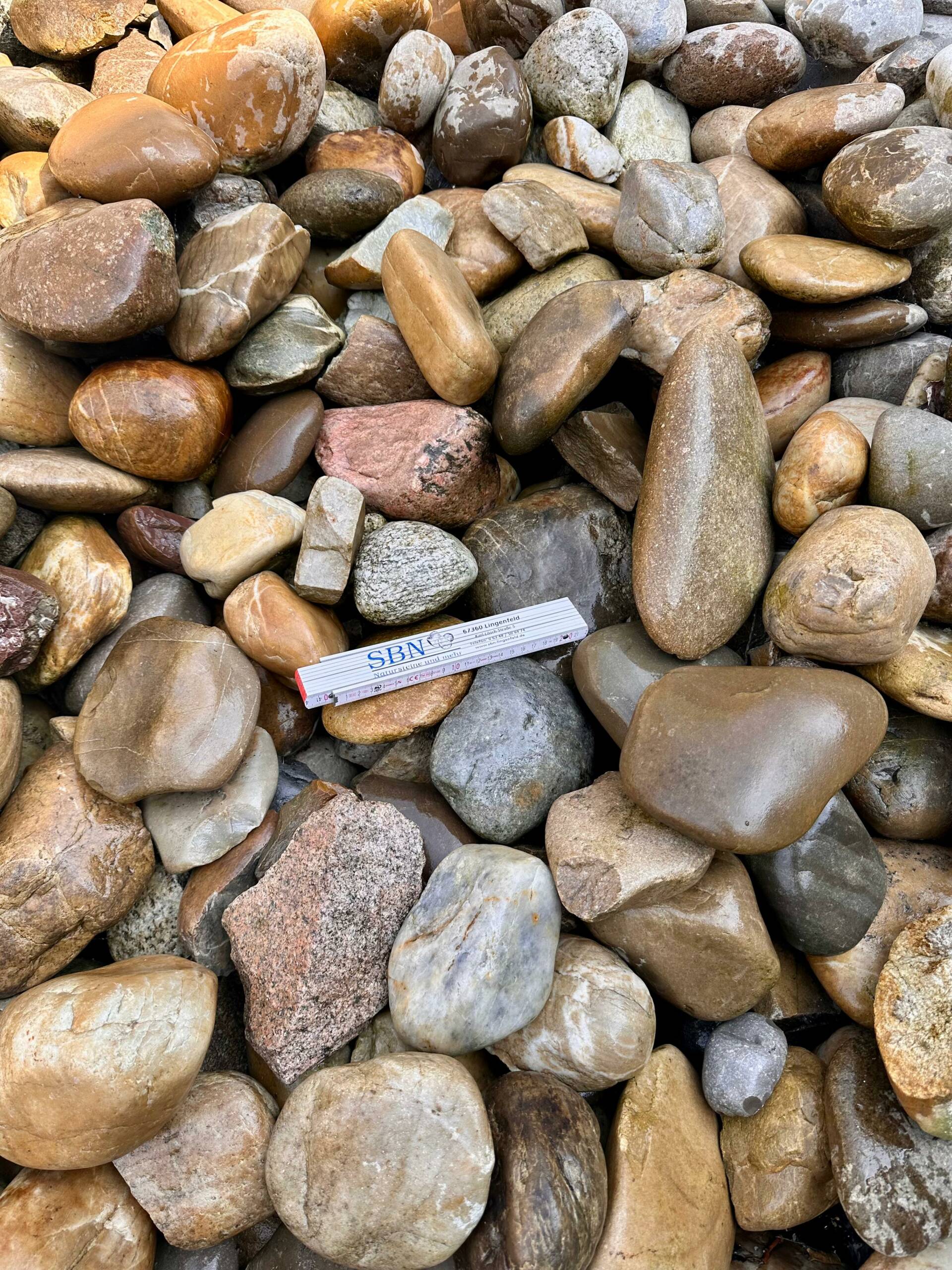 Rheinkies 100–300 mm ist ein großformatiger, natürlicher Rundkies mit typischer, gewaschener Oberflächenstruktur.
