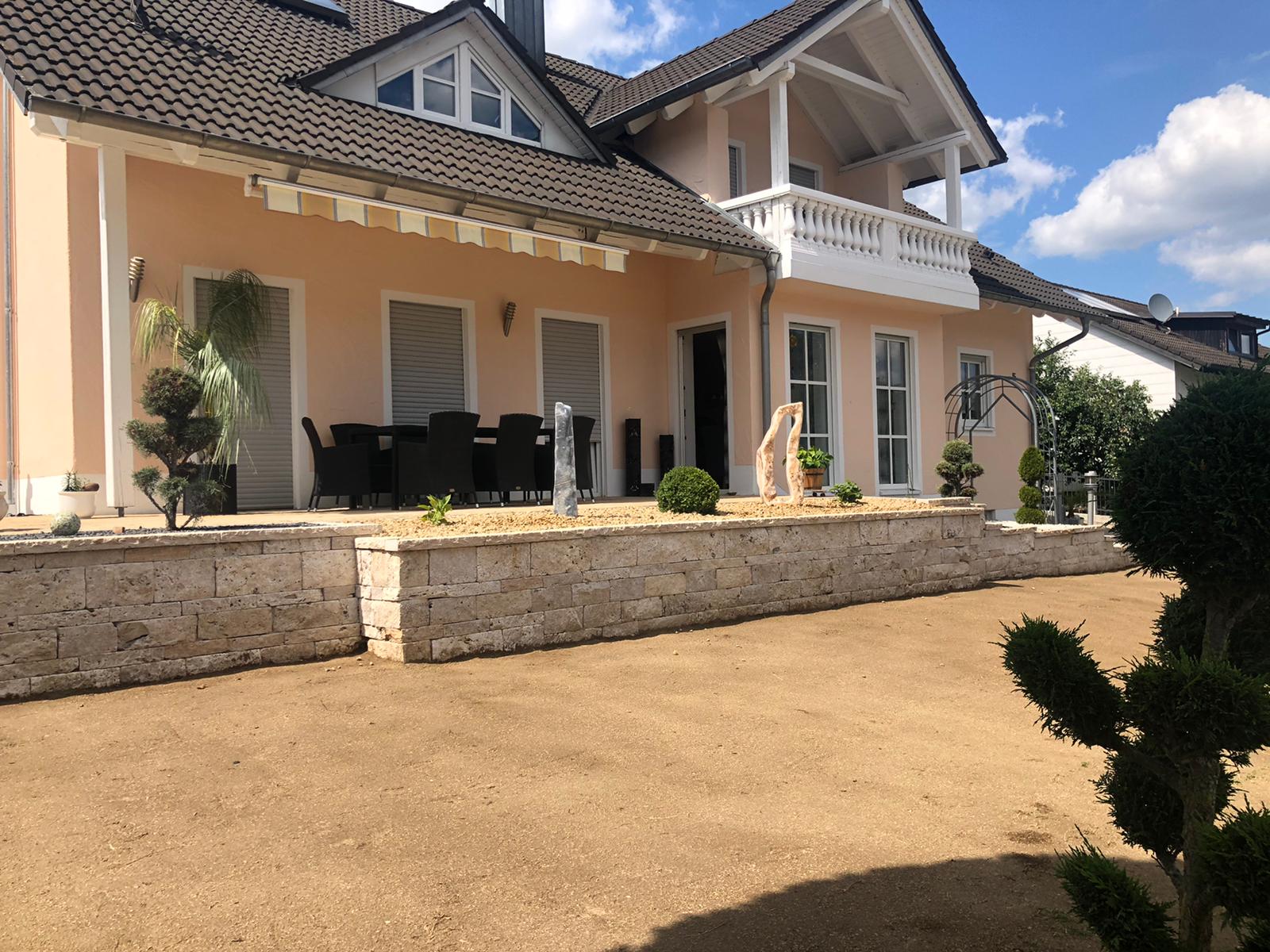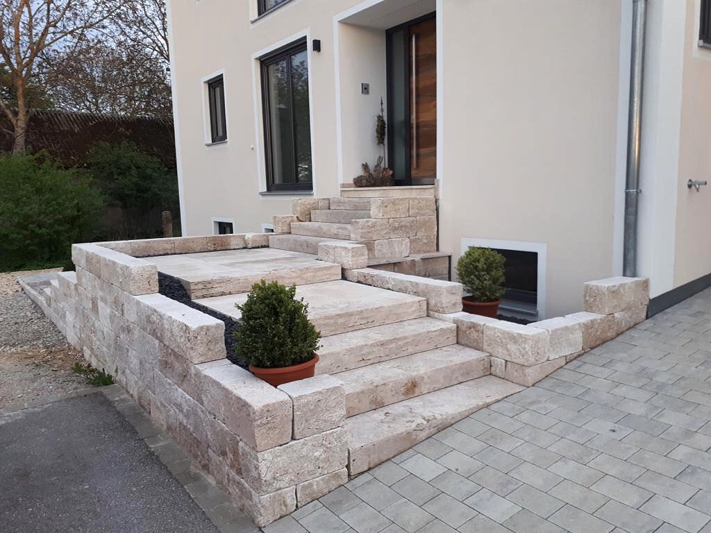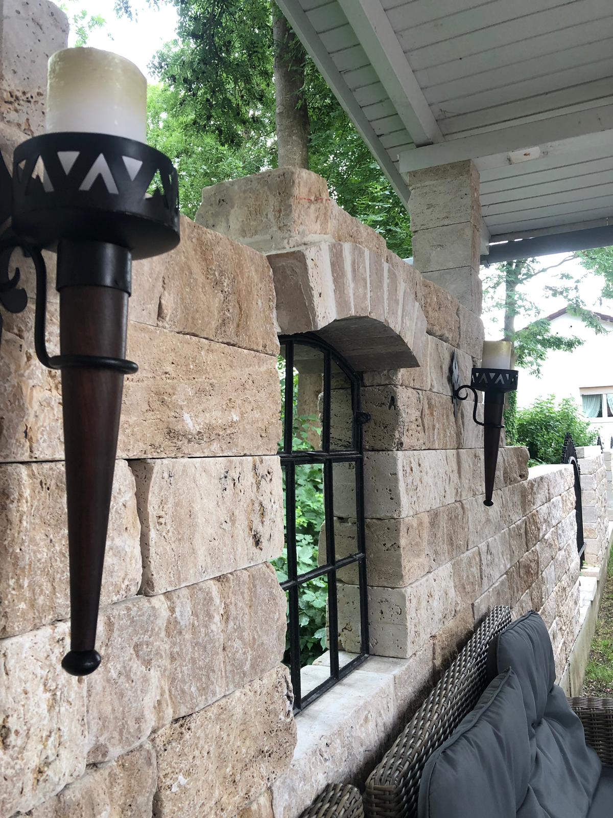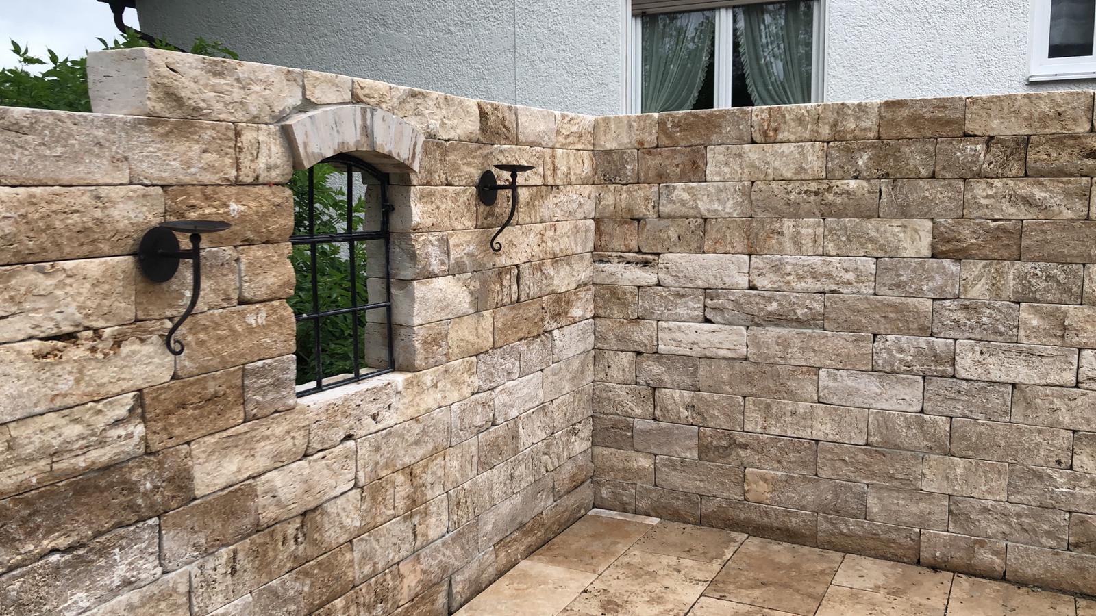 Sichtflächen gespalten und getrommelt Stoß und Lagerfugen gesägt.