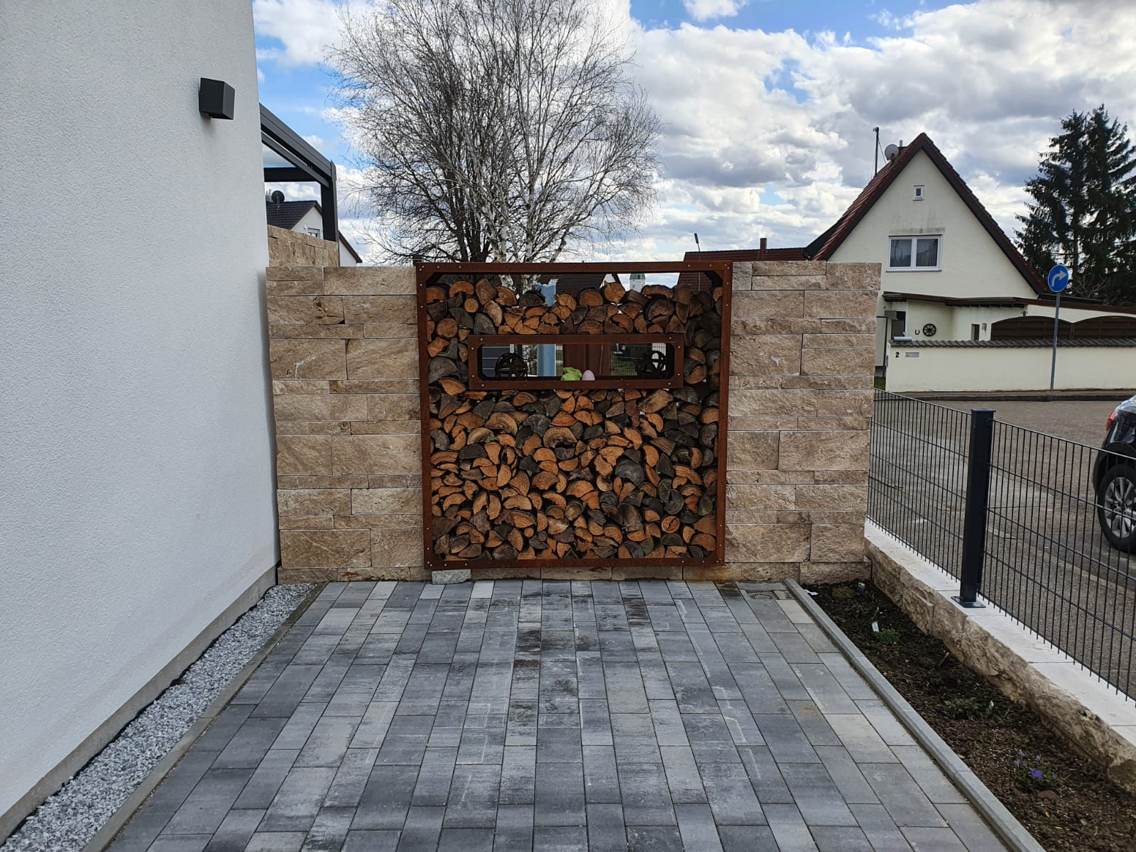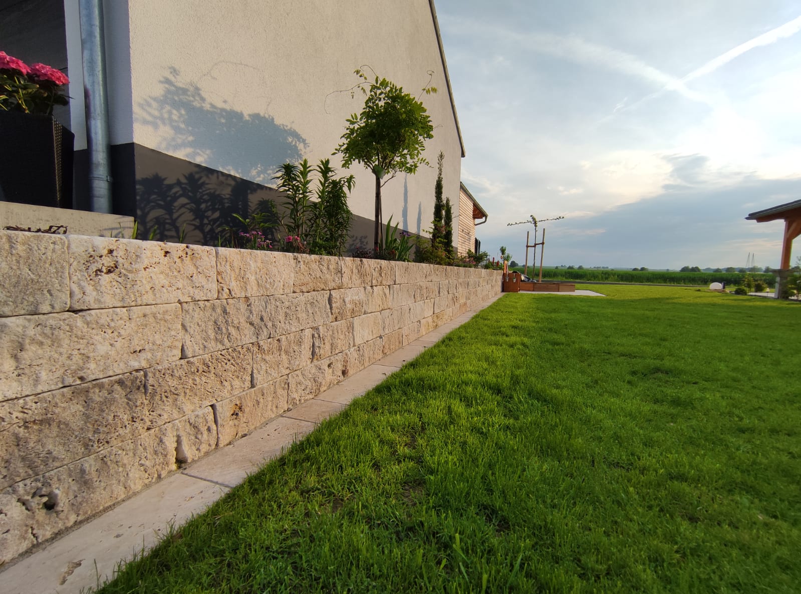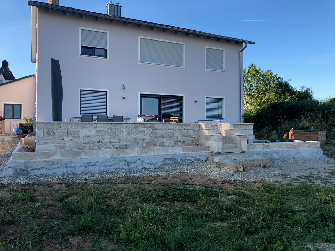 Sichtflächen gespalten und getrommelt Stoß und Lagerfugen gesägt.