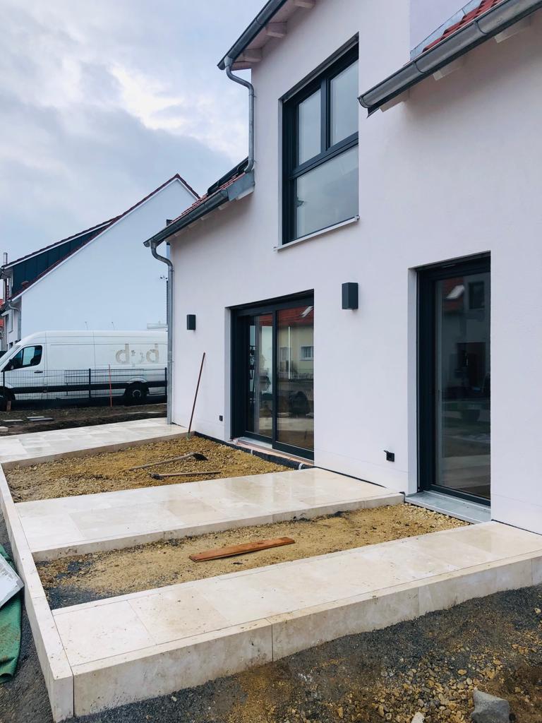 Travertin Assos Randsteine gesägt und geschliffen/gebürstet.