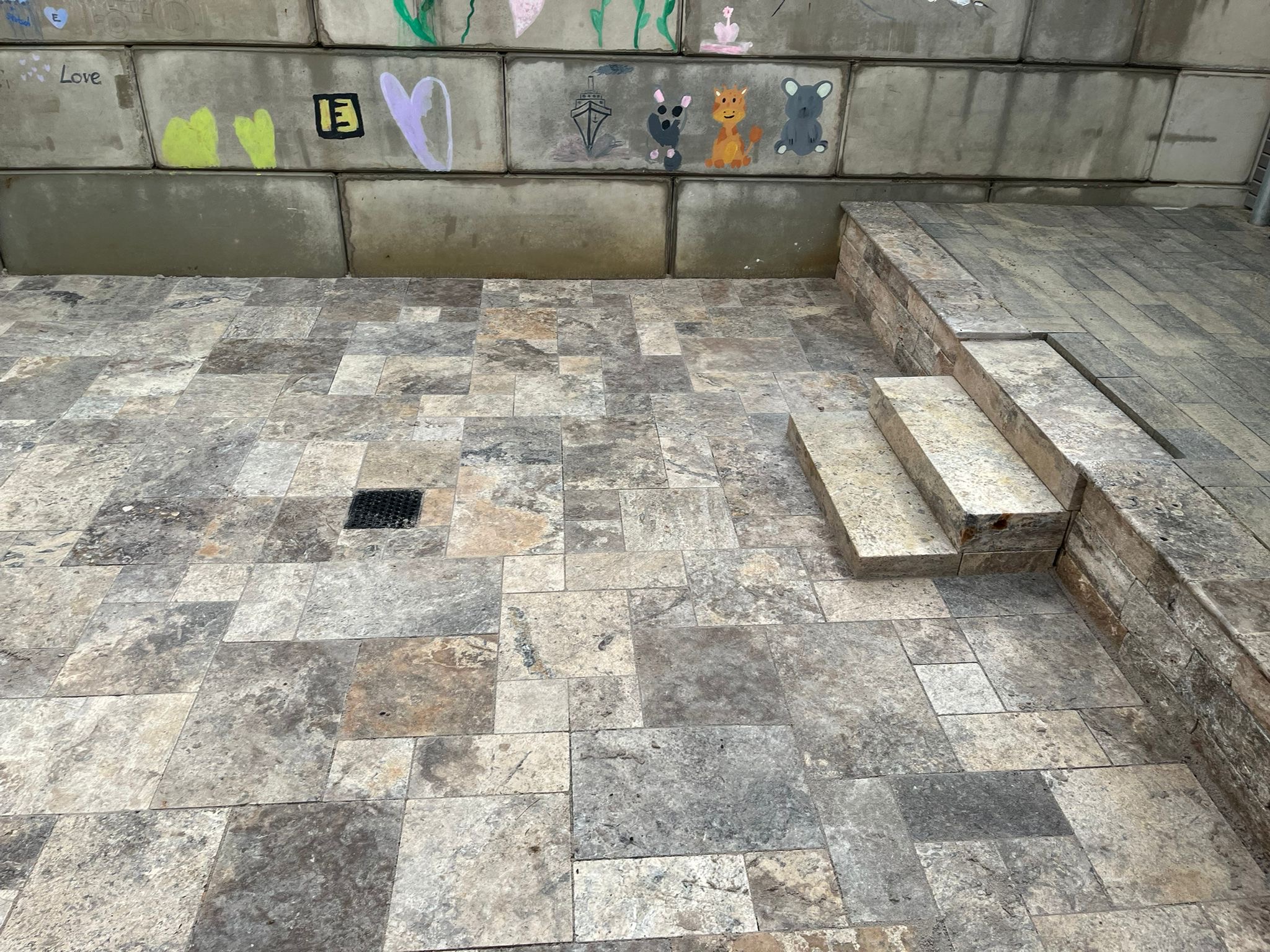 Die getrommelte Oberfläche sorgt für eine warme, antike Optik und angenehm weiche Kanten. Dadurch eignet sich dieser Travertin besonders für hochwertige Terrassen, Gartenwege, Poolumrandungen, Innenhöfe sowie weitere stilvolle Außenbereiche.